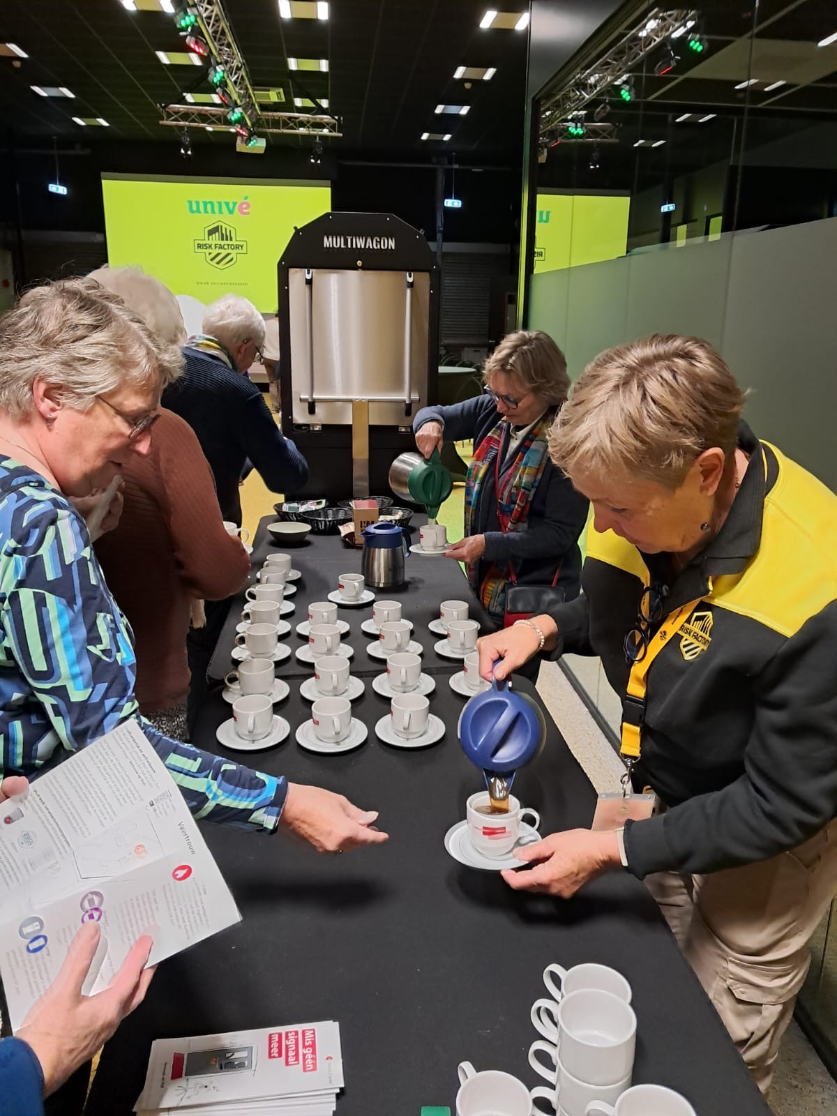We werden met koffie ontvangen door enthousiaste vrijwilligers. Na enige uitleg werden we in 4 groepen verdeeld om naar de verschillende ruimtes te gaan waar we kennis konden maken met de onderwerpen die voor ons uitgezocht waren. Bij het onderwerp digitale criminaliteit leerden we om alert te zijn op bijvoorbeeld vragen om geld. Zeker nu een stem zo maar via AI op die van een van jouw familieleden kan lijken.